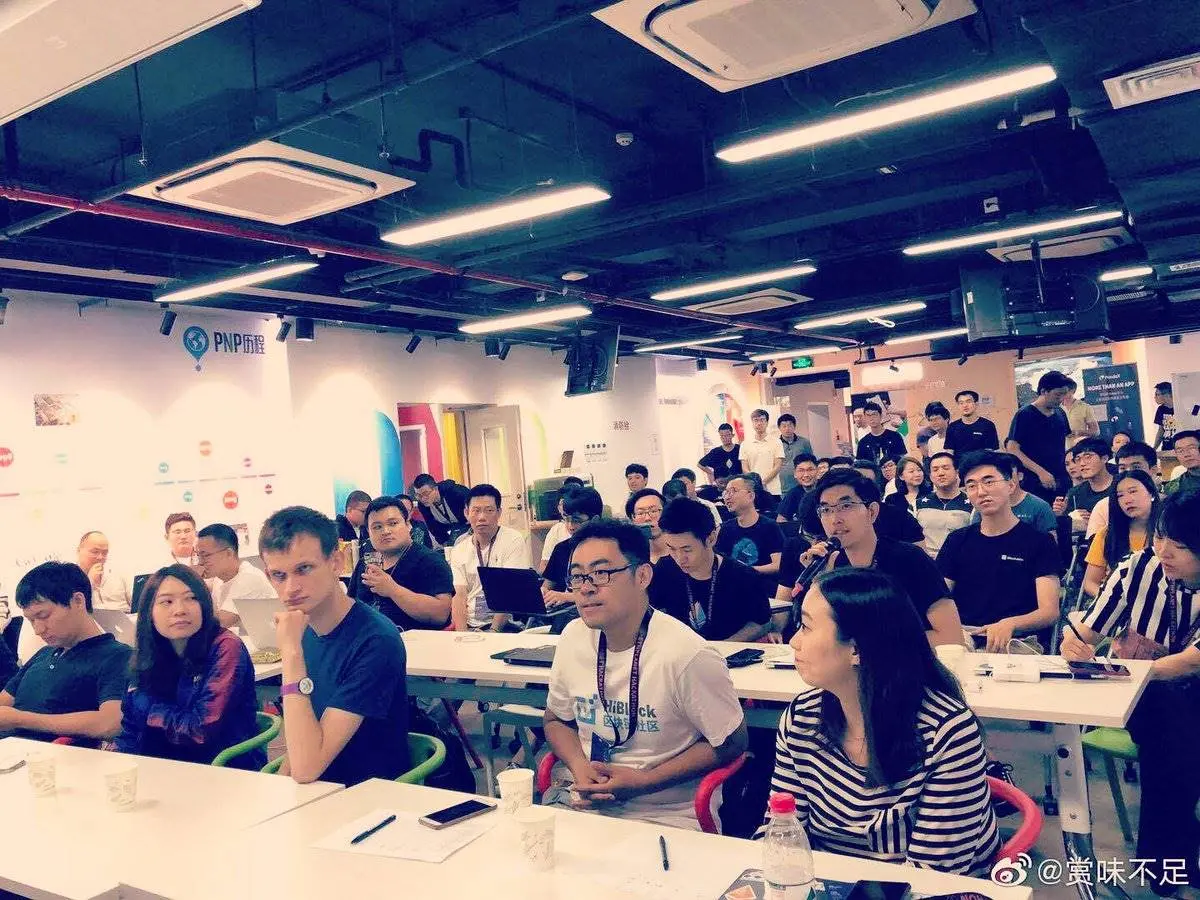 附图2019年以太坊在北京的黑客松评选日,坐在vitalik旁边那位即是Co-EDs Hsiao-Wei @hwwonx