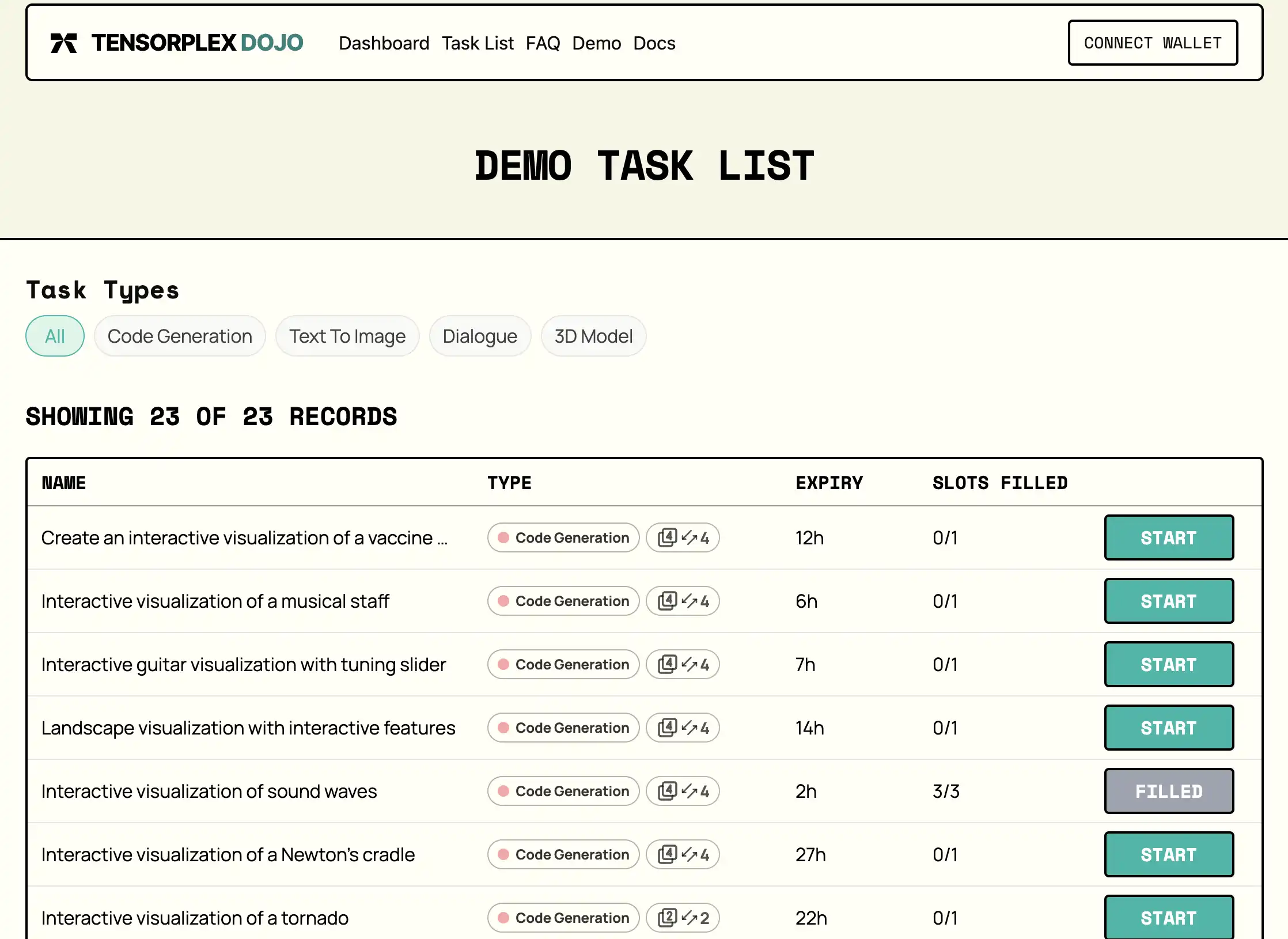 主要工作流程就是,任何人都可以用 LLM 生成独特的合成任务「可能是游戏物理反馈、生成图像的质量、以及物理算法等等」。通过 Dojo 收集「人工」反馈数据加入响应混淆技术。