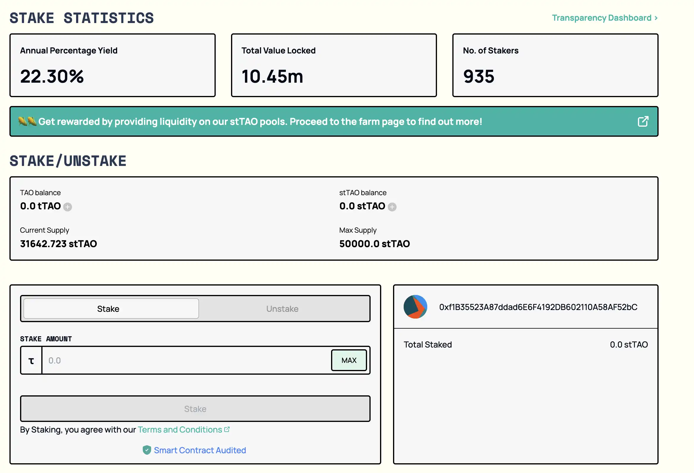 在 dTao 发布前 bittensor 的生态其实十分匮乏,Tensorplex 贡献了 TAO 生态中的核心 DeFi 产品,其中之一就是 Tensorplex Stake 作为一款跨链质押产品,推出了 stTAO,一款 LSD ERC 20 「Liquid Staking Derivative」代币,允许 EVM 投资者无需下载 Substrate 兼容的钱包,同时可以 TAO 生态系统并享受质押奖励,而并手动委托。同时可以将质押资产桥接到 Bittensor 等网络参与验证节点运作,为此 Tensorplex 还在 Substrate 和 EVM 之间建立了最小化信任的桥梁。除此之外孵化了 TaoBank 等借贷协议,允许用户以质押的 TAO 作为抵押品获取无息贷款。质押的峰值 TVL 达到了 3000 多万美元,这也让 Tensorplex 成为 Tao 上最大的验证节点之一。
