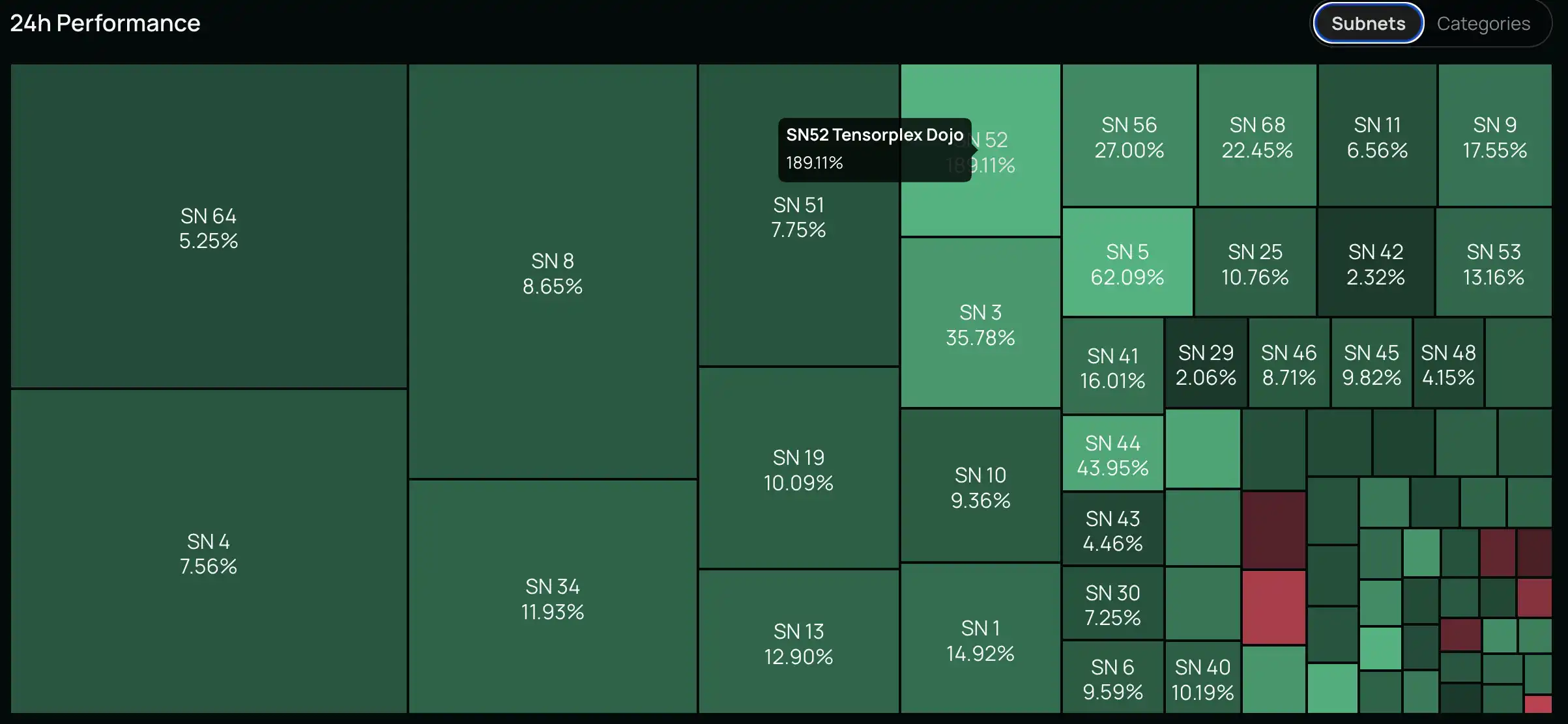 Dojo Subnet,在过去的 24 小时内成为了 dTAO 中最闪耀的子网,在 YziLabs 宣布投资 Tensorplex Labs 之后更是暴涨了 500%,Dojo 是一个数据收集平台,但不仅是一个数据收集平台,而是加入了人类作为观察第三方的综合的生态系统,人类智能可以直接影响链上和现实世界中的 AI 开发、培训和代理操作。
