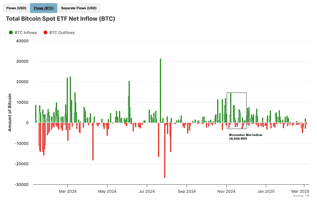 持续的通胀担忧和经济不确定性,促使许多投资者将 比特币 视为避险资产,进一步推动了其「数字黄金」叙事。这导致资金从传统避险资产流向比特币,加剧了市场的资金流入。