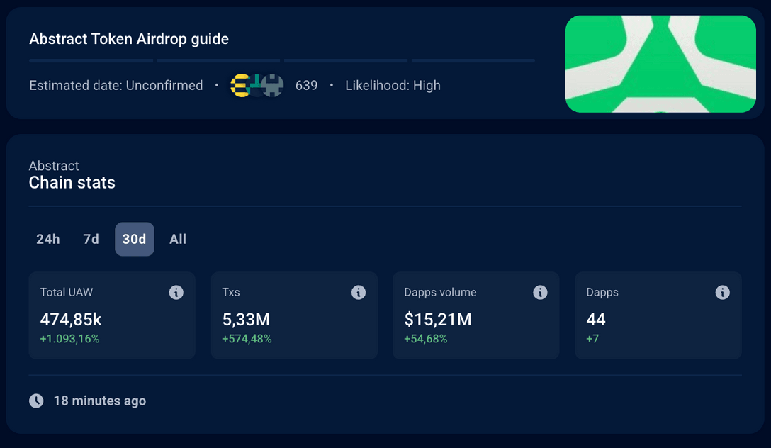 Abstract 脱颖而出,UAW(独立活跃钱包)增长 1093%。