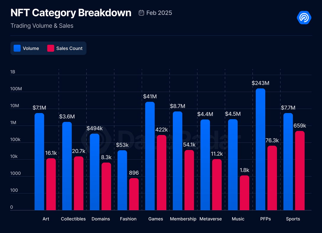 分析 2 月份交易量最大的 NFT 类别,可以更深入了解市场趋势: