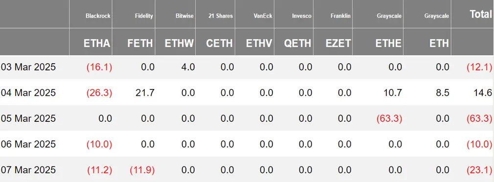 上周流出主要来自贝莱德 ETHA,净流出 6360 万美元。 共有 4 只 以太坊现货 ETF 未有资金流动。