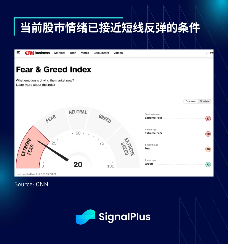 风险资产应该已接近短线反弹的条件,目前股市的 Fear & Greed Index 已跌至极端低点,而大多数美股指数也显示出技术性超卖的状况。
