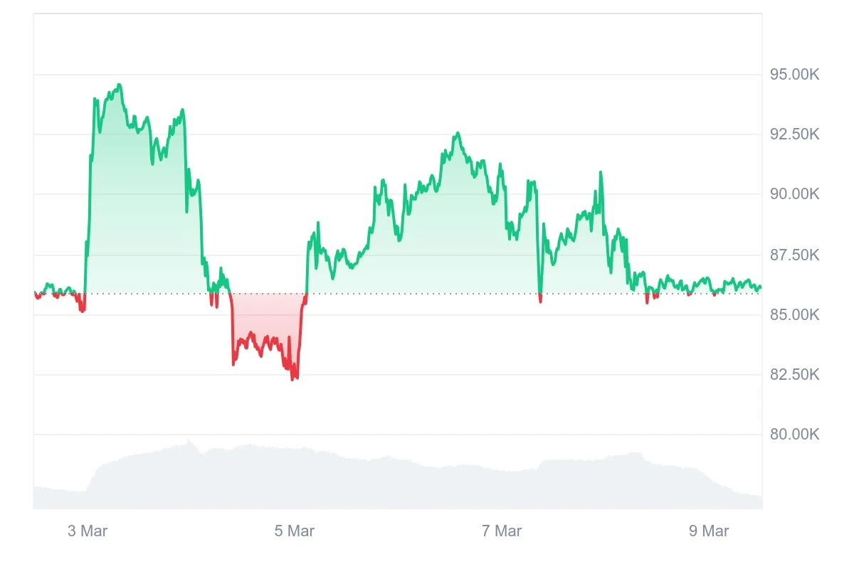 3 月 8 日:多空激烈交锋,价格重回 86, 000 美元附近