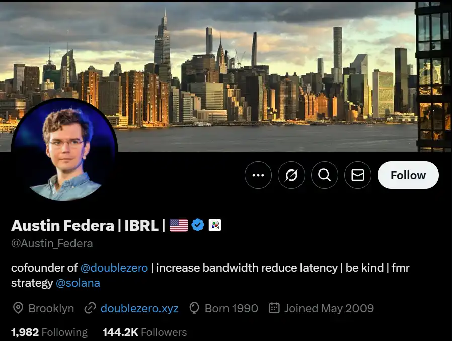 一个项目要想在杀出重围,不仅要有技术实力,更要有能够调动资源、推动叙事的核心人物,Double Zero 之所以一登场就吸引市场目光,原因之一就是它的首席创始人——Austin Federa。