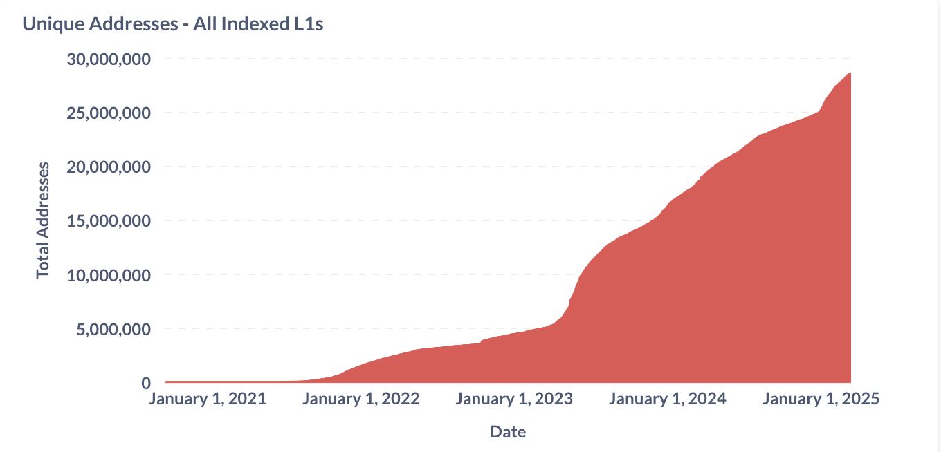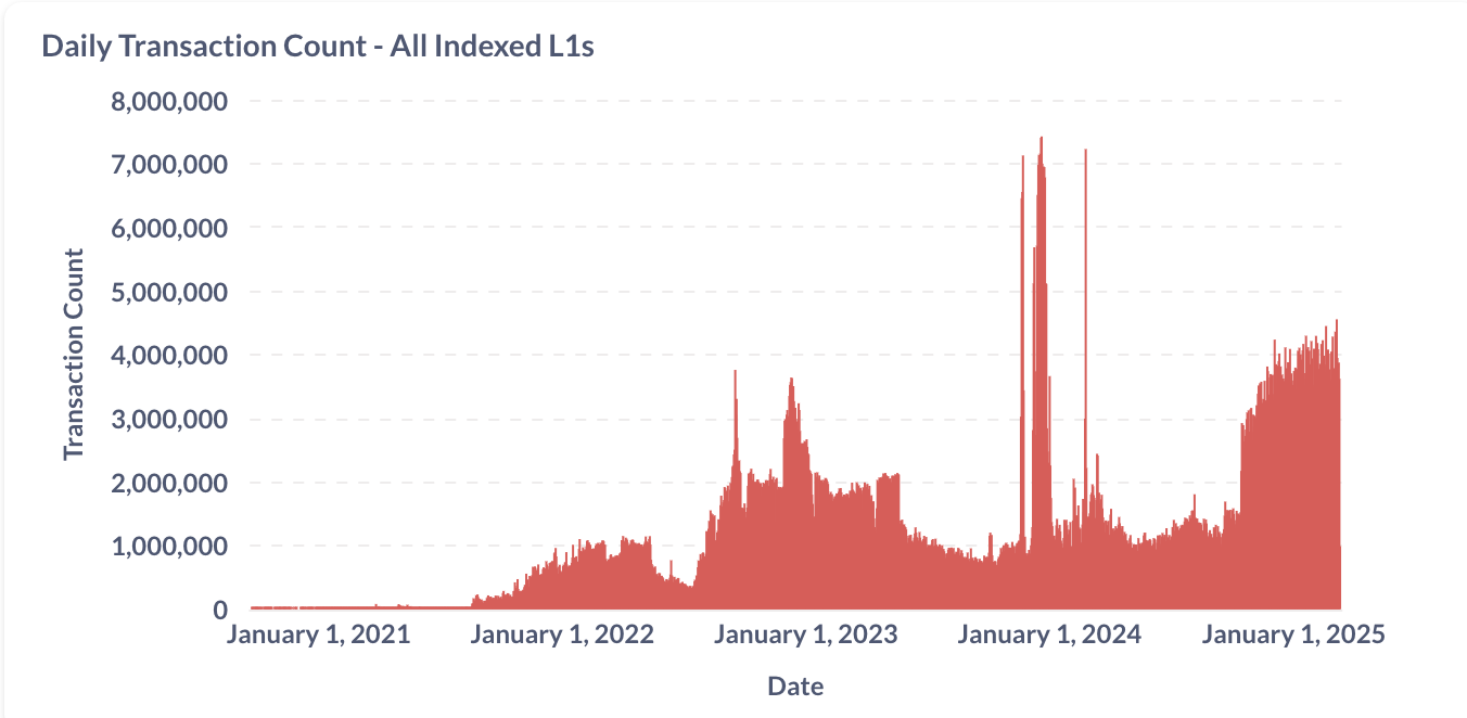 然而,近期技术和生态调整为其带来一定的复苏迹象。官网数据显示,截至3月11日,Avalanche网络的日交易笔数在今年最高冲至455万笔,创下近一年新高。独立地址总数则累计攀升至约2866万个,其中日活跃地址数在今年一度达到35.9万个,为2024年2月以来最佳表现。