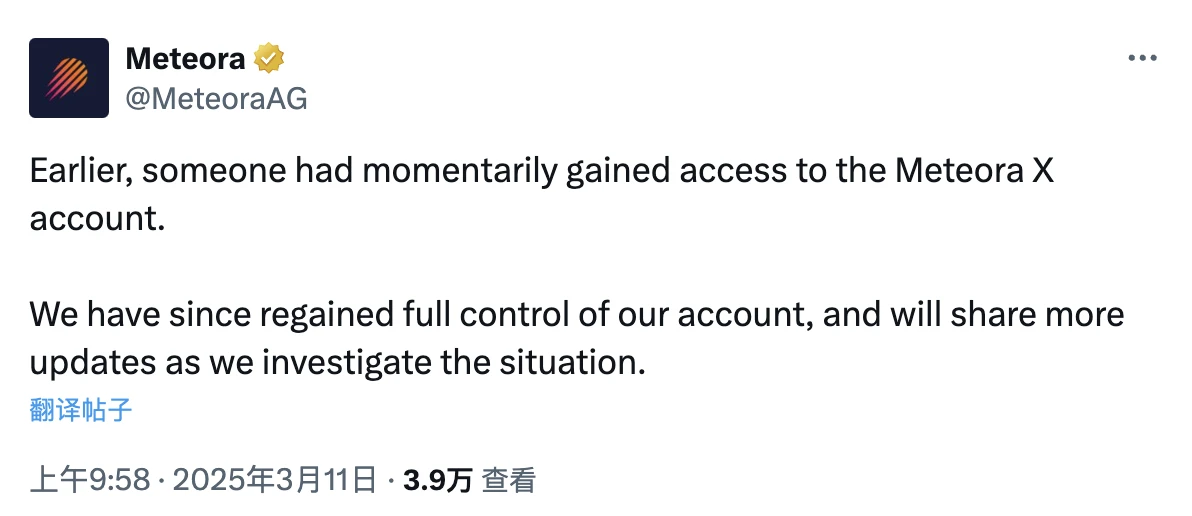 进展:Meteora 账户转推评论