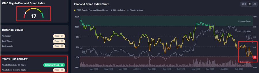 加密货币和股票的恐惧与贪婪指数本月已降至自2022年熊市以来的最低点。