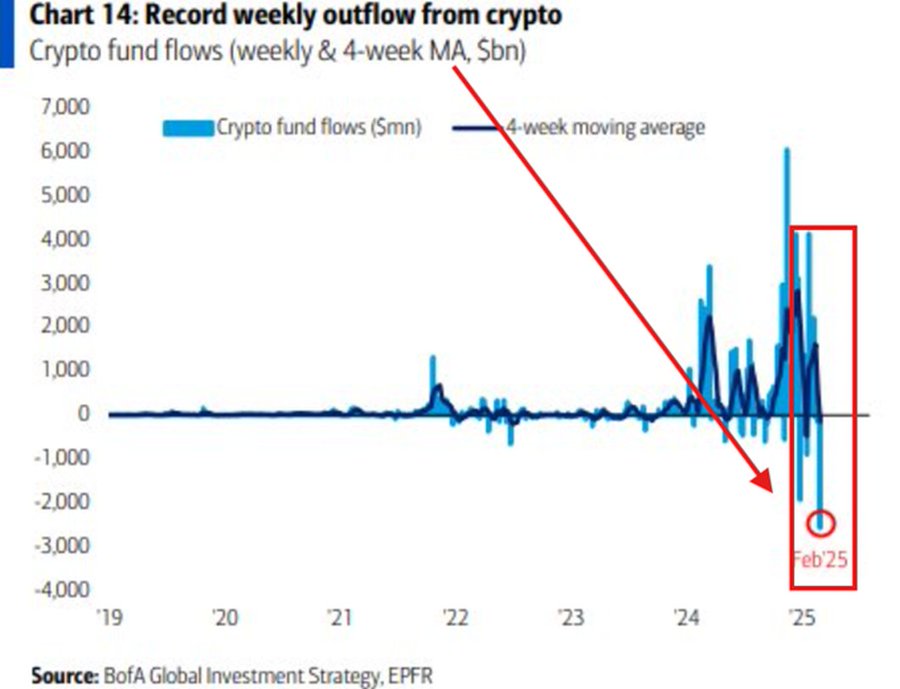 在2月的最后一周,加密货币基金出现了创纪录的26亿美元资金外流。