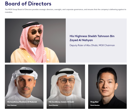 继续深扒,这一机构的神秘背景终于浮出了水面。在官方资料中提到,MGX的董事会主席为Sheikh Tahnoun bin Zayed Al Nahyan,此人是现任的阿布扎比副酋长,也是阿联酋国家安全顾问。国安顾问与副酋长,已然昭示出其与阿布扎比关系的不一般,而就着姓名往下找,一切疑问都找到了答案。