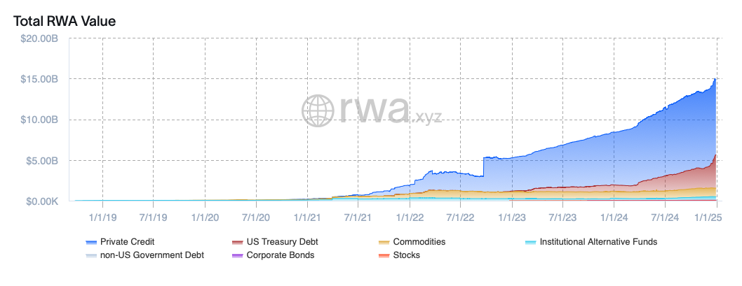 RWA作为链上经济新兴板块(不含稳定币)当前总市值约150亿美元。机构对加密资产的需求不言而喻——比特币ETF被誉为史上最成功ETF发行,而BUIDL等产品则彰显市场对代币化资产的渴求,这些趋势正强化DeFi的合法性地位。(数据来源:rwa.xyz)