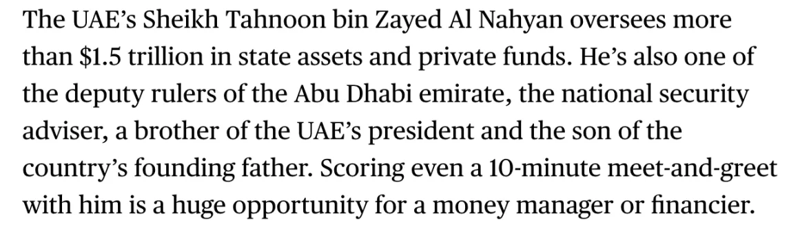 彭博社 2024 年曾在一篇报道中如此描述塔赫农——他掌管着超过 1.5 万亿美元的国有资产和私人基金,对于任何一名基金经理或金融人士来说,与他见一面(哪怕只有 10 分钟)也会是一个巨大的机会。