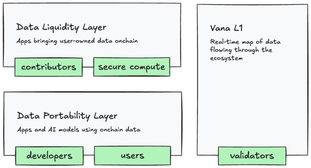 作为一个与EVM兼容的Layer 1区块链网络,Vana的技术架构包含五个核心组件: