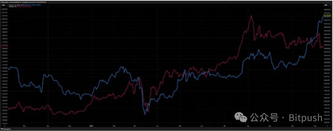 当前黄金的表现可能让大家想起2024年的情景。当时,加密货币和美股横盘整理,而黄金则创下新高。在3月至10月期间,比特币在5万至7万美元之间震荡,而黄金上涨近40%至2800美元。而随着特朗普当选,比特币一度飙升至10万美元以上,而黄金涨势则因资金从避险资产流向风险资产而停滞。
