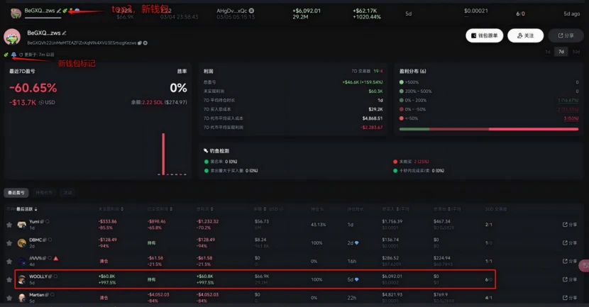 该文章以 $WOLLY 为例子,以第一视角查看并分析钱包类型。
