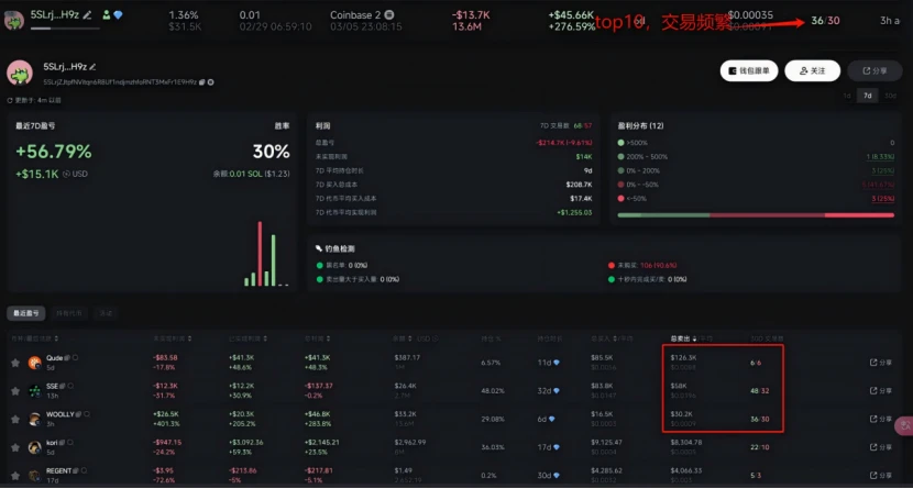 7iabBMwmSvS4CFPcjW2XYZY53bUCHzXjCFEFhxeYP4CY 见图 4 ,首先这个钱包的地址频繁去交易内盘,首先定义为是一名内盘选手,其次它能购买并波段 $woolly 可能是受到朋友的 call,因为按照它交易的尿性是不太可能去大仓位购买一个代币的。