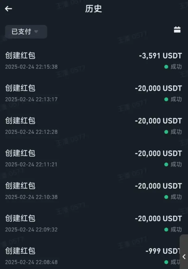 图为被盗用户 Binance 账号红包转账记录