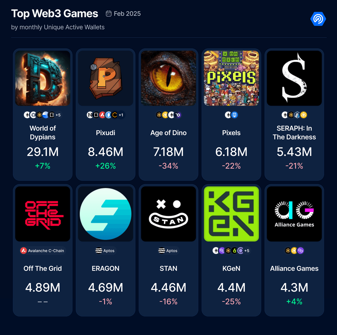 总体而言,2 月份的投资形势凸显了人们对链游基础设施日益增长的信心,为 2025 年的采用和创新铺平了道路。