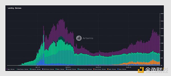 相较于全球未偿债务总额 320 万亿美元,或家庭和非金融企业的贷款总额 120 万亿美元,链上借贷协议当前的 186 亿美元未偿贷款 仅占其中的微不足道的一部分。