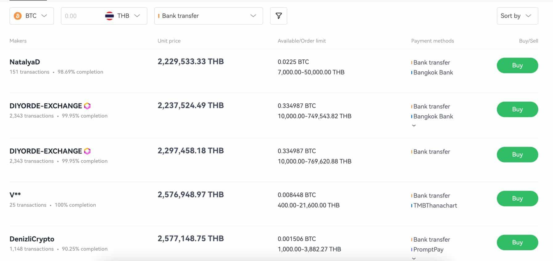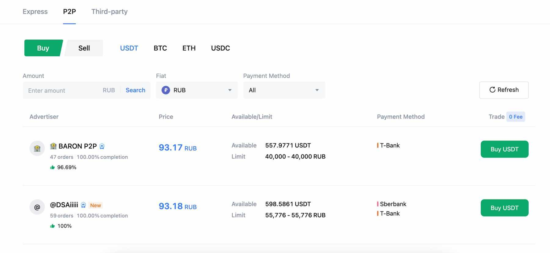 如果您想快速完成交易,后者将非常重要。点击 P2P 卖家会显示更多信息,让买家做出明智的决定。所有 P2P 交易均通过 Bin 托管,以提高安全性。不收取额外费用。请注意,虽然接受美元,但美国客户不能使用 P2P 平台。