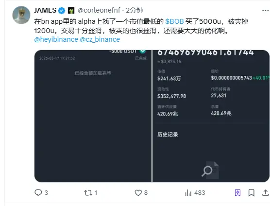 比如说今天声量比较大的币安和UniversalX,有推特用户称在币安alpha板块交易时虽然交易流畅,但被夹掉了1200U;UniversalX此前也被多次吐槽交易并不顺滑。