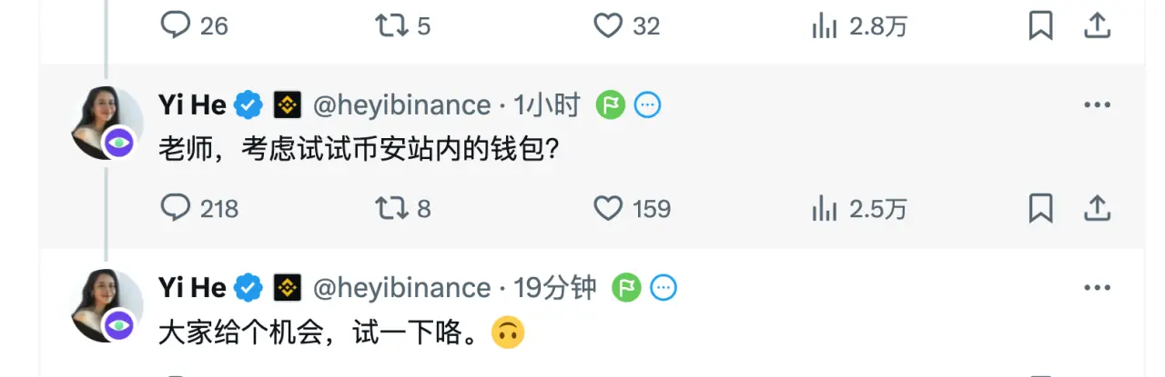 币安这次可是眼疾手快。币安联创何一在各大kol评论区互动,自荐自家的币安钱包。