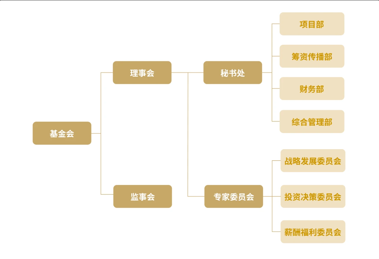 (上图为某一基金会的内部治理模式,仅供参考)