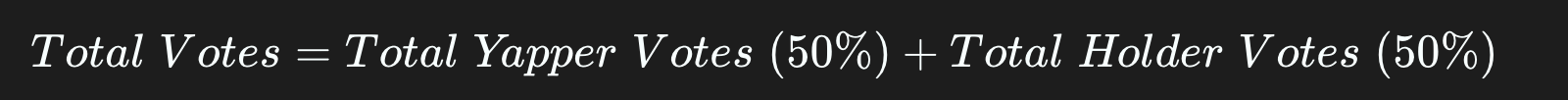 投票权重由Yappers(50%)+Holder[sKaito、NFT](50%)组成。