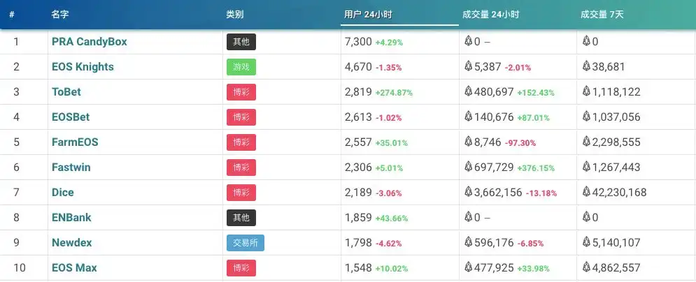 站在今天的视角上看,我们其实很难理解,用户体验这么差的情况下, 2018 年底 2019 年初时期的 EOS 却有过一次爆发期:以链上菠菜为主的 dapp 在 EOS 上非常火热。