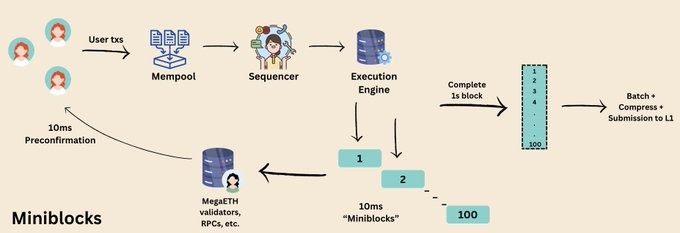 MegaETH计划每 10 毫秒进行一次预确认,他们把这种形式称为“Miniblocks”。