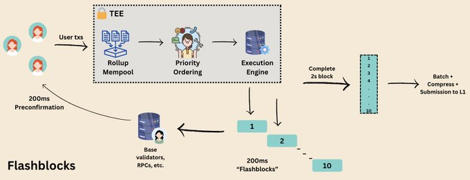 - 每隔200毫秒,排序者创建一个子区块(Flashblock),并将其广播给L2节点。