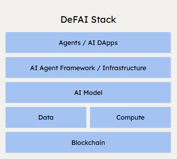 DeFAI 跨越多个层级。区块链是基础层,因为 AI 代理必须与特定链交互才能执行交易和执行智能合约。在此之上,数据层和计算层提供了训练 AI 模型所需的基础设施,这些模型来自历史价格数据、市场情绪和链上分析。隐私和可验证层确保敏感财务数据在保持无信任执行的同时保持安全。最后,代理框架允许开发人员构建专门的 AI 驱动应用程序,例如自主交易机器人、信用风险评估器和链上治理优化器。