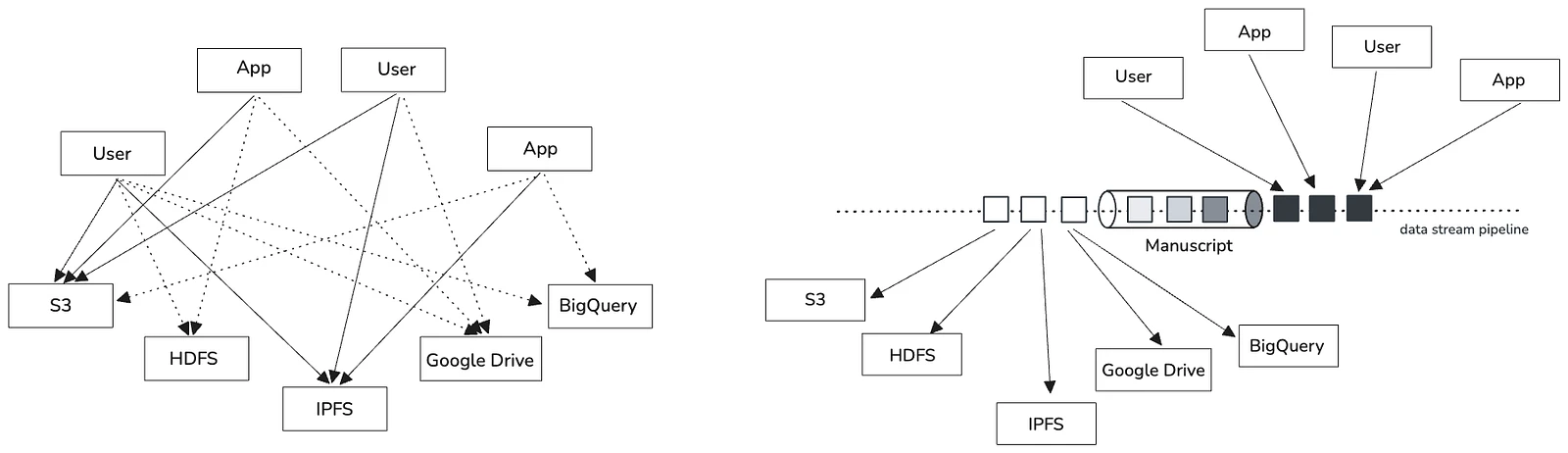 Chainbase 提供全链可验证的链上结构化数据集,可增强 AI 代理的交易、洞察、预测、alpha 寻找等功能。他们推出了 manuscripts ,这是一种区块链数据流框架,用于将链上和链下数据集成到目标数据存储中,以进行无限制的查询和分析。