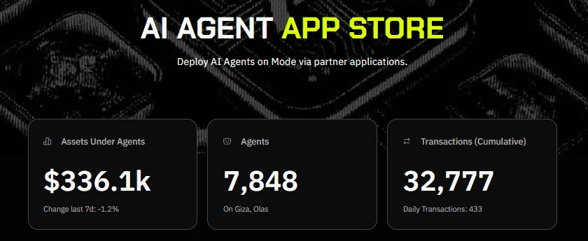 此外,Mode 还支持许多基于 AI 和代理的团队。Mode 付出了巨大努力,将 Autonolas、Giza、Sturdy 等协议集成到其生态中,随着更多代理的开发和执行交易,Mode 迅速发展。