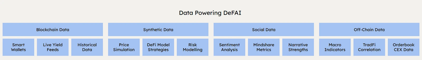 DeFAI 的下一阶段可能会专注于集成有用的数据层,以开发最佳的代理平台或代理。这将需要有关巨鲸活动、流动性变化等的深层的链上数据,同时产生有用的合成数据以进行更好的预测分析,并结合来自一般市场的情绪分析,无论是特定类别(如 AI 代理、DeSci 等)的代币波动,还是社交网络上的代币波动。