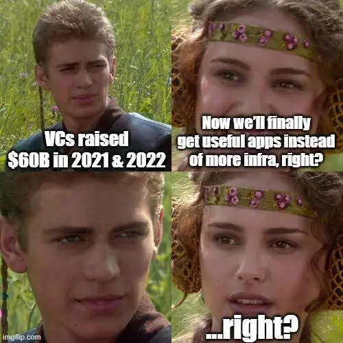 和所有市场一样,加密风投与流动市场遵循周期性规律。2021/2022年积累的过剩资本正在迅速消耗殆尽,这使得创始人筹资变得更加困难。与此同时,资金枯竭的风投机构在交易和条款上变得更加挑剔。