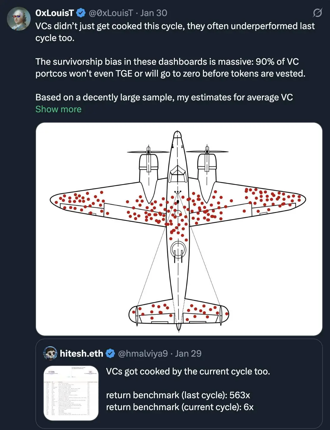 如今,大多数加密风投陷入了困境:无法募集新基金,手中持有的是一堆注定会按照“高FDV归零”剧本发展的低质量项目。在LP的压力下,这些风投从长期愿景的支持者转变为短期退出的追逐者。他们频繁抛售由风投支持的大型代币(如替代L1、L2和基础设施代币),而这些代币的高估值正是他们自己人为推高的。