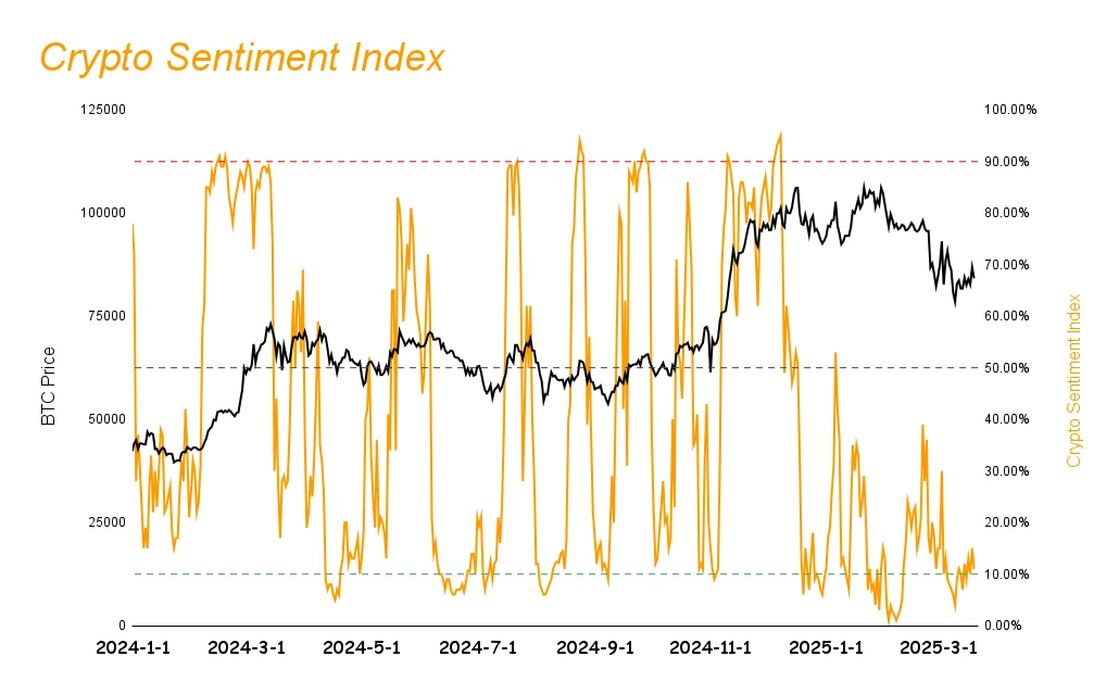 市场情绪指数由上周 8% 回升至 11% ,整体变动不大,仍在极度恐慌线上浮动。