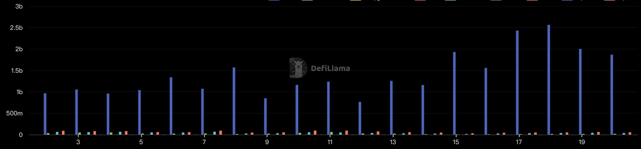 近期 Pancakeswap 的交易量明显增加,最高峰能够达到 31.5 亿美元的日交易,Pancakeswap 作为 BNB Chain 上最大的 DEX,可以反应出 BNB Chain 链上的生态情况。