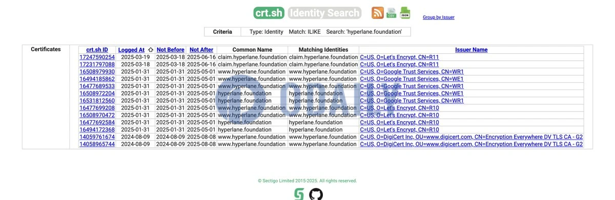 Hyperlane 疑似已注册 claim.hyperlane.foundation 子域名,或将启动空投