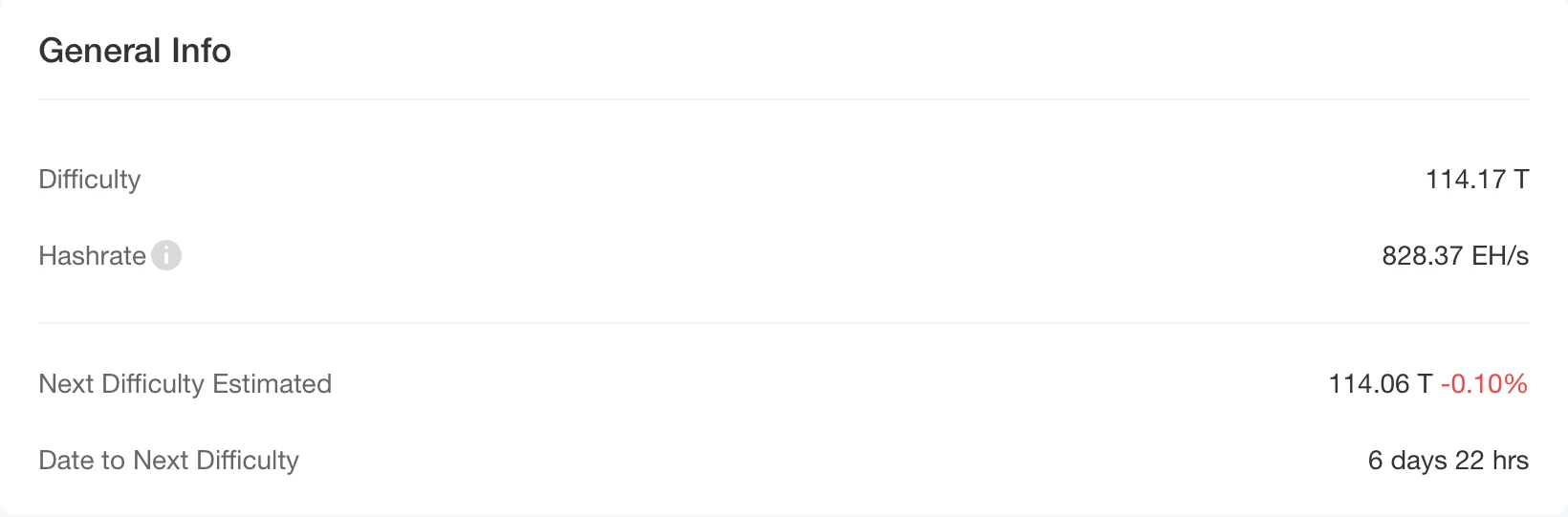 根据 CloverPool 的数据,直至撰稿时,比特币全网算力已经达到约 785.48 EH/s,而当前的挖矿难度为 112.15 T。根据当前趋势,预计在下次难度调整时(约在 2 天后),比特币挖矿难度将进一步上调约 0.51% ,达到 112.72 T。