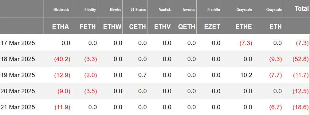 上周,美国以太坊现货 ETF 五日均出现净流出,总净流出 1.02 亿 美元,总资产净值达 67.7 亿美元。