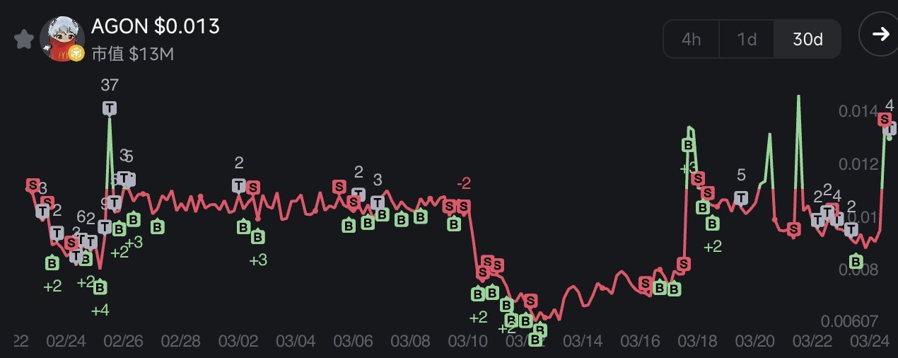 以新上币安 alpha 的项目 $AGON 为例,简单讲讲链上做市是怎么无声无息地控制筹码分发筹码,以及和gmgn这些数据平台上的指标(dev sell、bubble map等)是怎么进行攻防对抗的。