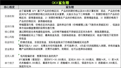 OKX 鲨鱼鳍适合那些赚多赚少无所谓,但不愿承担本金损失的用户,其核心的特点就是享受保底收益的同时,也能参与行情,赚取行情带来的浮动/额外收益。它通过追踪币价波动,让用户在市场震荡中赚取 USDT、BETH、OKSOL 等资产的年化收益。如果市场行情达到预期,还能解锁更高的额外回报。OKX 鲨鱼鳍提供 1 天、 3 天和 7 天的灵活参投期限,无需盯盘,可以根据市场预判和资金安排自由选择,轻松获取稳健收益。OKX 提供看涨型/看跌型鲨鱼鳍,用户可以同时买入看涨型和看跌型鲨鱼鳍,覆盖双向波动,成本增加但风险分散。此外,可以在恐慌指数飙升时参与,高波动率下平台提供的最高年化更优。总之,鲨鱼鳍适合作为“现金管理工具”,在明确震荡区间时用闲置资金获取收益,但仍然需严格管理仓位。