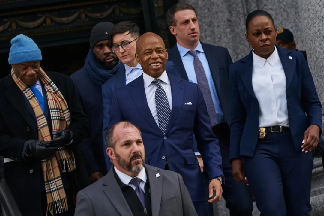 特朗普施压纽约南区检察官撤销对市长 Adams(中)的指控,来源:彭博社