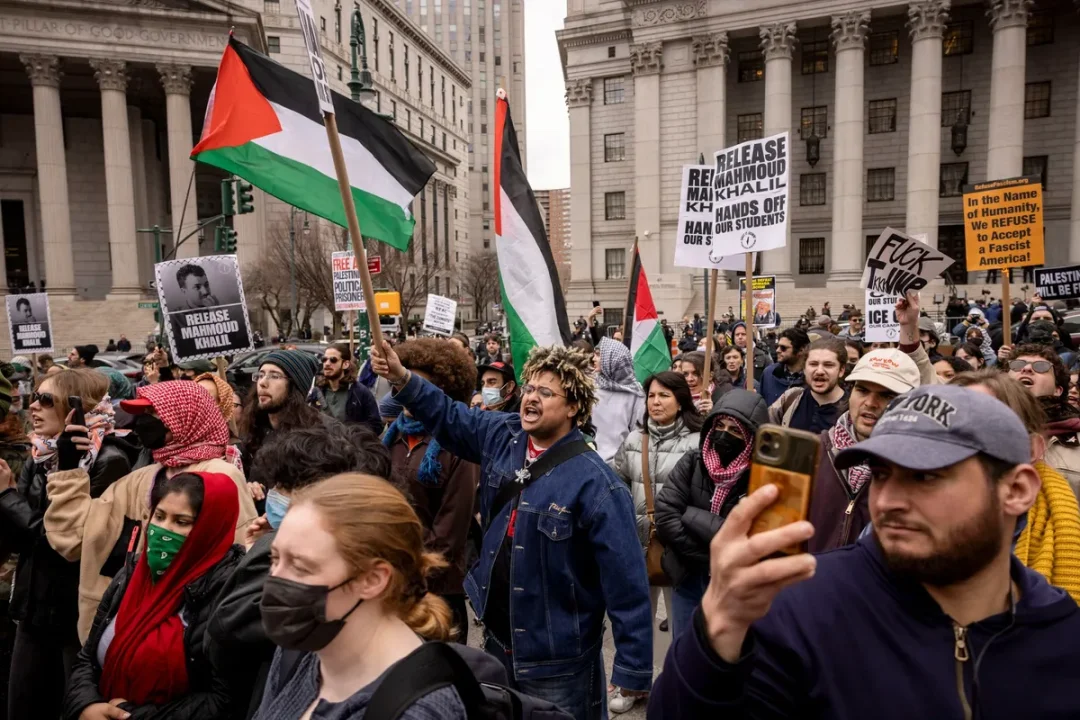 驱逐一名巴勒斯坦活动人士的举动在行为引发了一场法院抗议。来源:彭博社