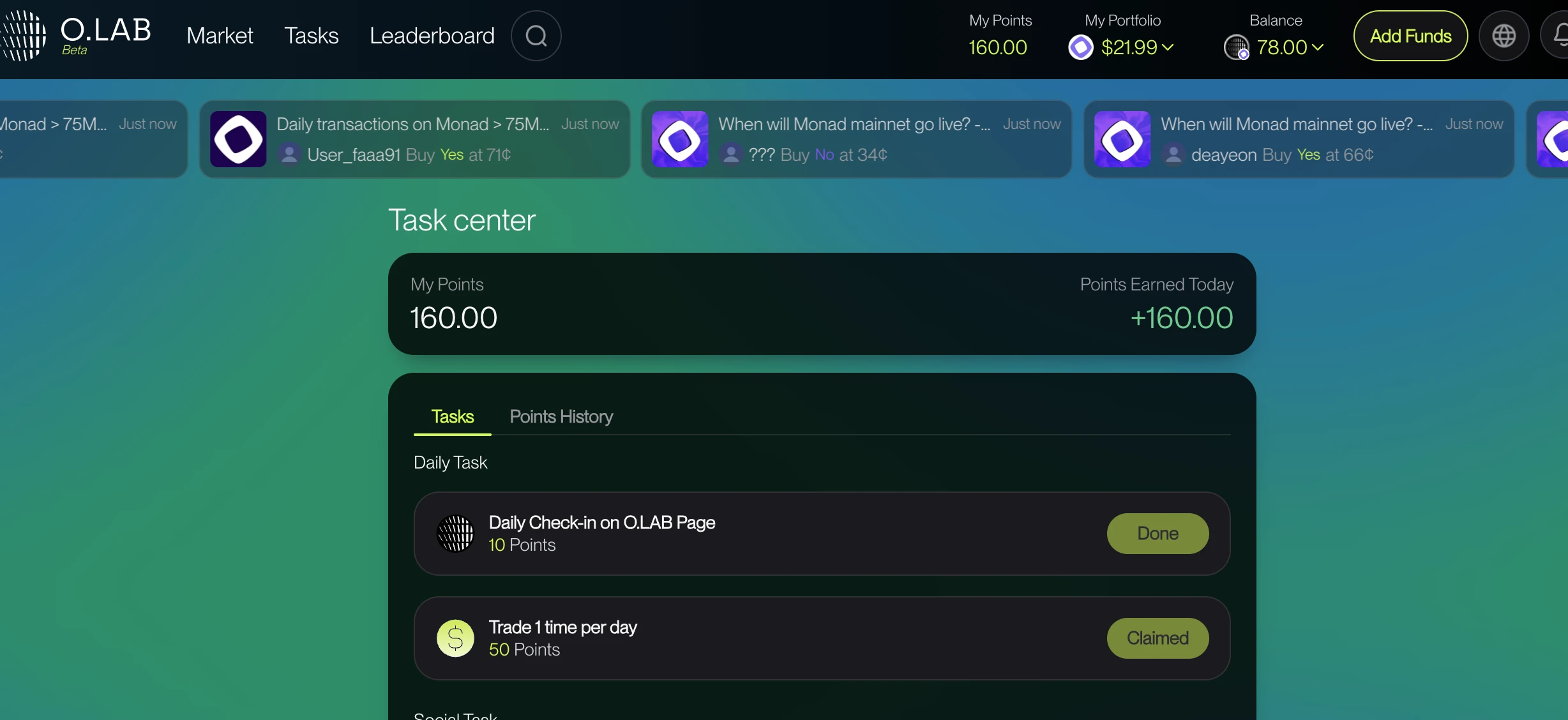 项目简介: Opinion Labs 一个预测市场平台,YZi Labs 领投,也是其 MVB 计划中 4 个表现最佳的项目之一。目前推出了 Beta 版本,支持 Monad 测试网和 Base 网络, 现用户可注册账户领取 USDO 测试币进行交易操作,完成社交类任务或邀请好友领取积分。 推荐一个注册邀请码: dfRAhCsx。