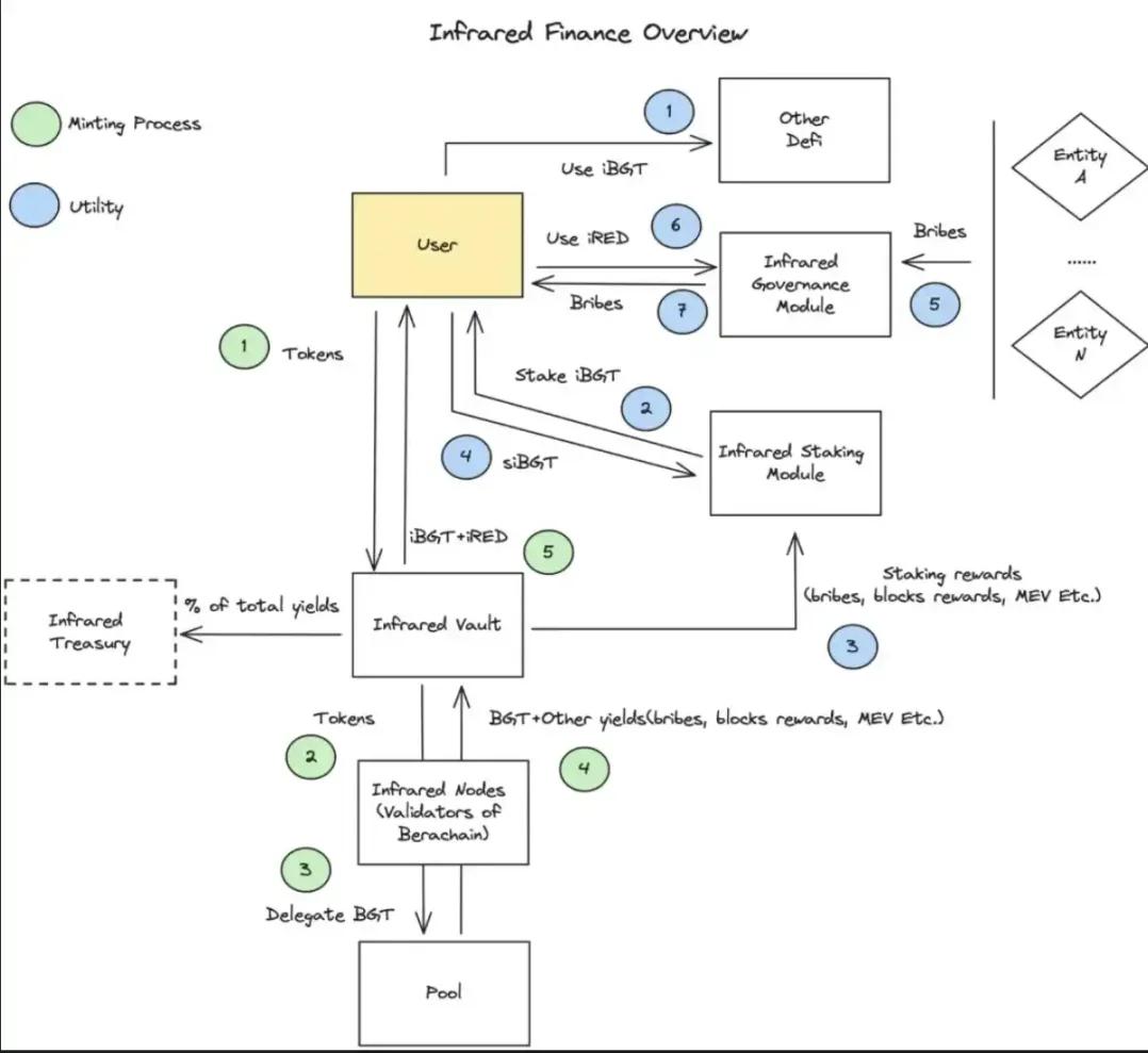 iBGT 与 BGT 按 1:1 的比例担保,值得注意的是,与 BGT 的不可转让性质不同,iBGT 可以直接转让。@InfraredFinance 作为验证者运营,允许用户将 PoL 资产存入保险库以赚取 iBGT,iBGT 可以在 Berachain 的 DeFi 生态系统中使用。